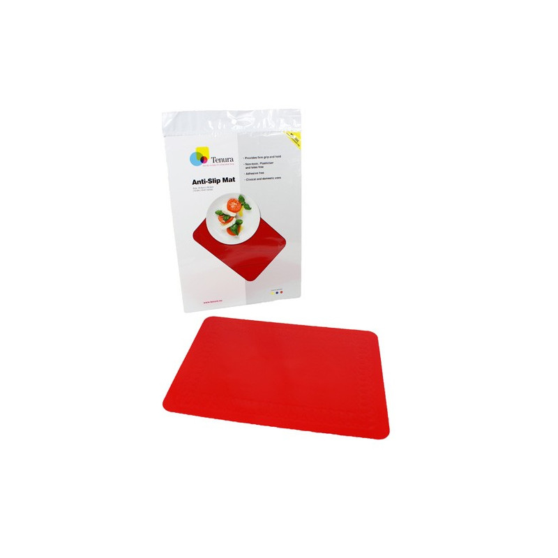 Empêche les assiettes, les bols et la vaisselle de glisser sur une table ou sur un plateau. Très pratique pour les personnes ayant des troubles de la préhension. Vendu à l'unité. Forme rectangulaire : 35 x 25 cm.