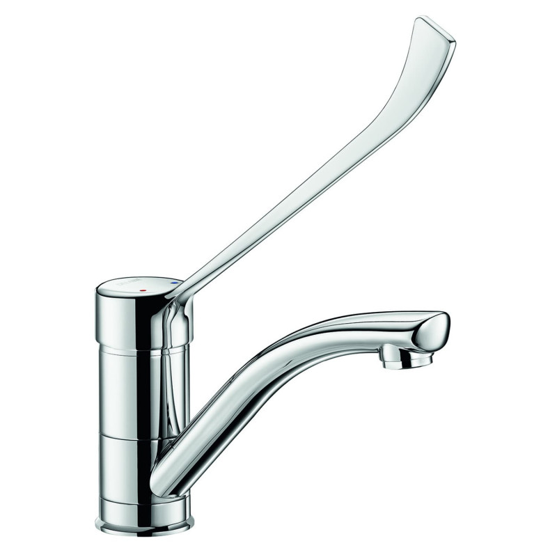 Brise-jet hygiénique. Corps et bec intérieur lisse. Poignée longue et courbée ergonomique. Bec orientable.