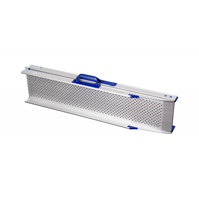 Paire de rampes d'accès télescopiques et pliables en aluminium avec surface antidérapante pour un maximum de sécurité. Disponible en 4 modèles de longueur différentes (201 à 296 cm) pour des hauteurs max. comprises entre 40 et 60 cm. Les rampes petits modèles sont plutôt adaptées pour monter un fauteuil, une moto, un scooter dans le coffre d'une voiture, et les rampes grands modèles pour le passage d'obstacles.