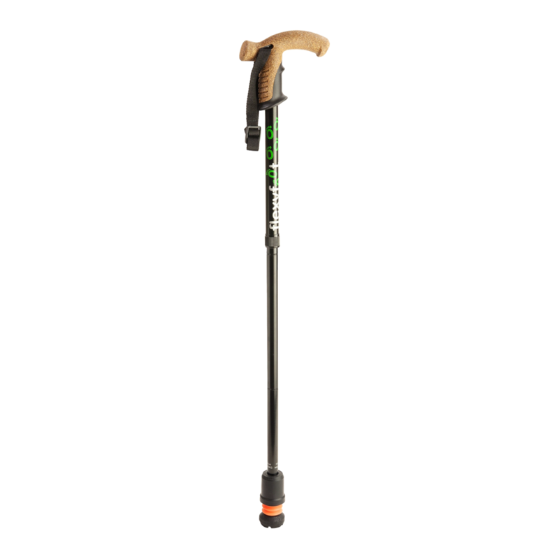 Poignée multifonction en liège avec dragonneHauteur réglable de 71 à 148 cmAvec embout FlexyfootComplètement pliableAluminium anodisé