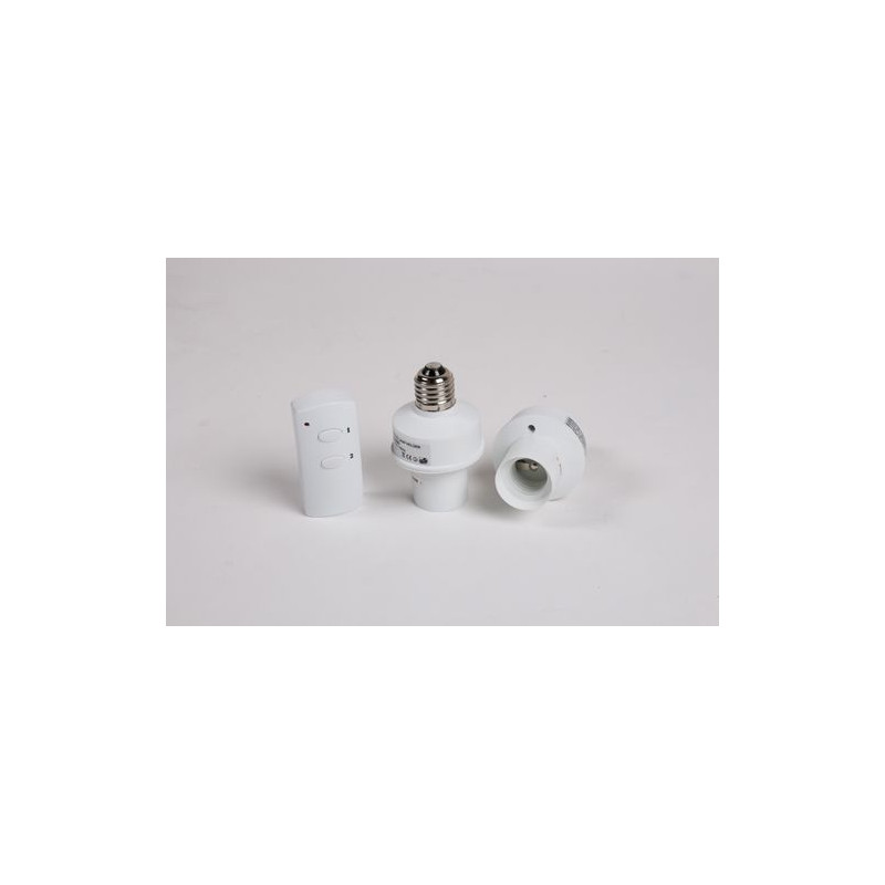 Lot de deux douilles télécommandables à distance : plus besoin de se lever pour aller atteindre la lumière avant de se coucher !Prévues pour tout type d'éclairage intérieur dans votre maison (lampe de chevet, plafond), garage, grenier etc. Contrôlez à distance vos deux lumières jusqu'à 20 m via une seule et même télécommande. Simple et pratique d'utilisation.