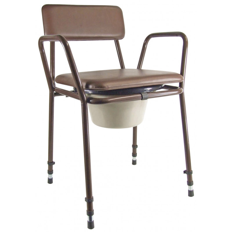 Pratique car légère, réglable en hauteur, empilable et même démontable. S'utilise comme chaise percée dans la chambre et/ou la salle de bains. Assise rembourrée et soudée au vinyle afin de réduire le risque de bactéries. Seau amovible de 5 litres avec anse et couvercle. Poids max supporté : 150 ou 170 kg.