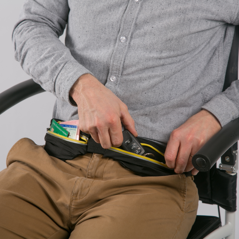 Taille unique. Visible dans l'obscurité. Deux pochettes de rangement. Largeur : 80 à 120 cm. Poids : 74 g.