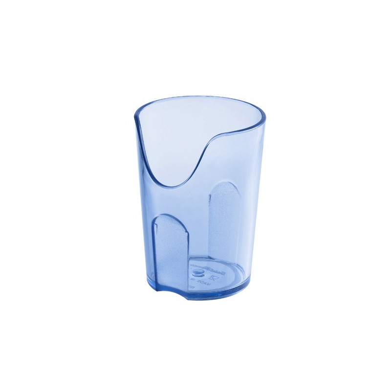 Verre avec découpe pour le nez, découpe nasale, d'une contenance de 16cl. Couleur : bleu transparent. Empilable. Idéal pour un usage intensif en collectivité.