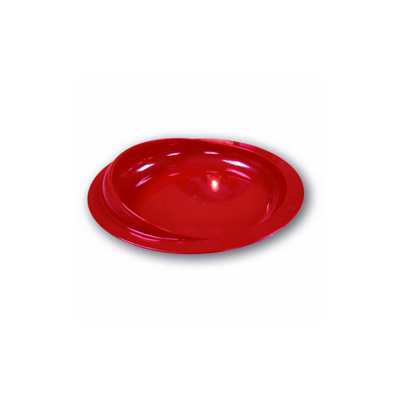 Assiette à rebord facilitant la saisie des aliments aux personnes ayant des difficultés de préhension. La couleur rouge, vive, est particulièrement adaptée aux personnes atteintes de troubles cognitifs comme la maladie d'Alzheimer. Base antidérapante.