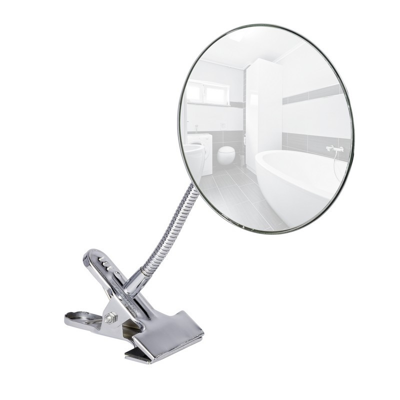 Miroir cosmétique. Fixation par pince. Grossissement x5. Dimensions : Ø 15 x 27 cmlongueur bras : 19 cmPoids : 373 g.