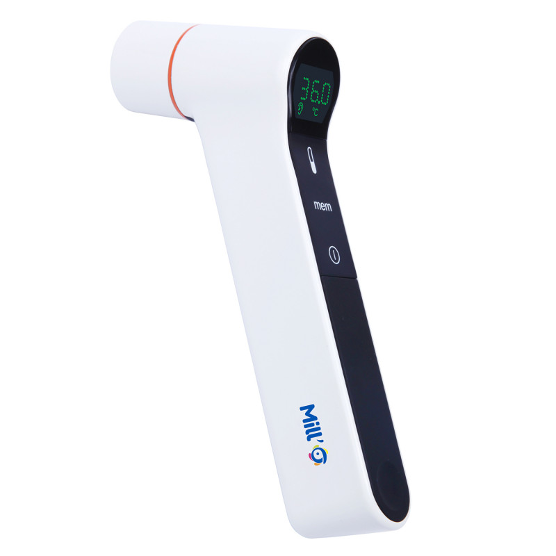 Prise de température frontale ou auriculaire. Mesure hygiénique sans contact sur le corps, objets, air ambiant ou eau. Plage de mesure de 34°C à 43°C. Affichage de la température avec un code couleur. Affichage en ° Celsius par défaut, peut être paramétré en Fahrenheit.