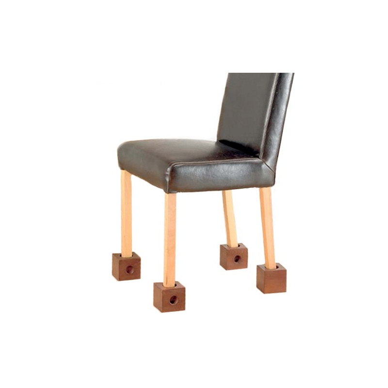 Rehausseurs de chaises en bois qui permet de rehausser l'assise de 7,4 cm. Trois trous différents pour s'adapter aux différentes largeurs de pied (diamètre des trous : 3, 5 et 7,5 cm. )Profondeur des trous : 1,6 cm. Vendu par lot de 4. Poids de chaque cube : 450 g. Hauteur de cube : 9 cm. Supporte une charge totale de 380 kg.