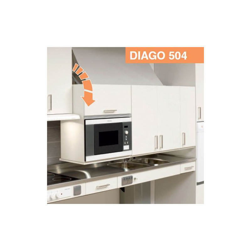 Élévateur pour meubles hauts à course diagonale. Ce dispositif permet de descendre et d'avancer le caisson en place. Peut être livré avec système de commande par interrupteur ou par télécommande sans fil. Tarif indicatif. Le prix dépend de la dimension du ou des meubles à équiper (de 600mm à 1800mm). Pour plus d'information, contactez ergotechnik.