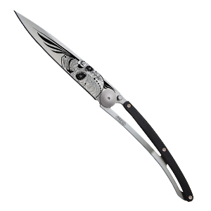 Couteau 100% personnalisable ultra léger. Le cadeau idéal et original. Personnalisez votre Deejo en choisissant l'un des nombreux tatouages et en gravant le texte de votre choix !