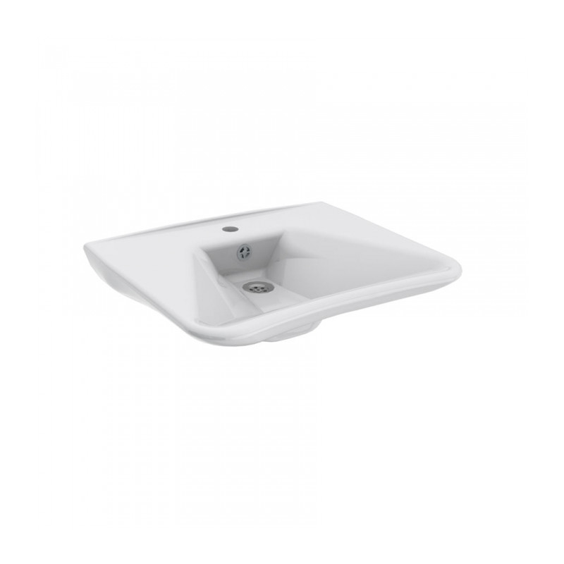Lavabo PMR avec trop-plein. Largeur : 60 cm. Profondeur: 49 cm. A installer à hauteur fixe.