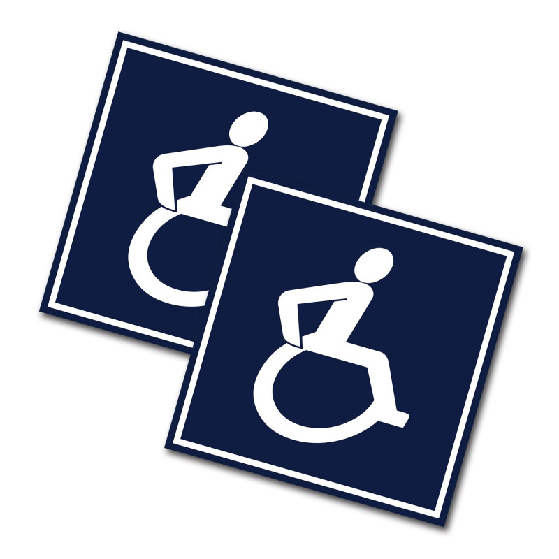 Lot de 2 autocollants avec pictogramme "handicap" à coller à l'avant et à l'arrière de votre véhicule. Pictogramme bien visible par tous les automobilistes qui vous entourent. Se colle à l'extérieur : sur la carrosserie ou sur la vitre du véhicule. 15 x 15 cm