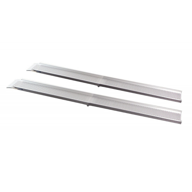 Paire de rampes d'accès pliables en aluminium avec surface antidérapante pour un maximum de sécurité. Disponible en 6 modèles de longueurs différentes (de 110 à 212 cm). Les rampes petits modèles sont plutôt adaptées pour monter un fauteuil, une moto, un scooter dans le coffre d'une voiture et les rampes grands modèles pour le passage d'obstacles. Attention : pour les références TE-2540-4 , TE-2540-5 et TE-2540-6, les rampes ne sont pas dotées de anses et pièces en plastique bleues. (cf visuel numéro 3).