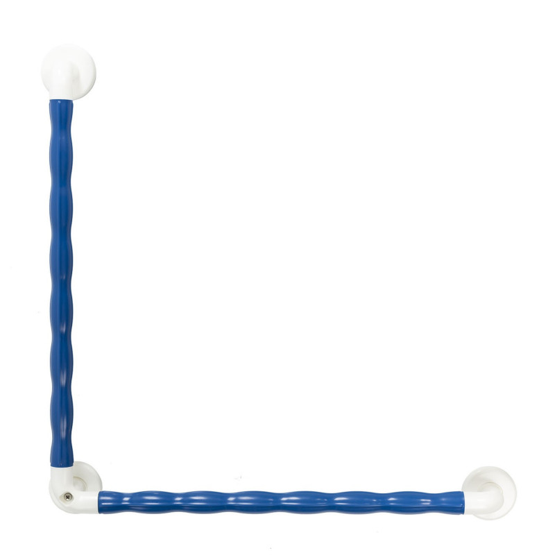 Barre de maintien de forme coudée à 90 degrés. Idéalement disposée près des WC, elle peut servir aussi sous la douche ou aux abords du bain. Avec sa poignée de conception ergonomique, la barre d'appui permet une parfaite préhension.