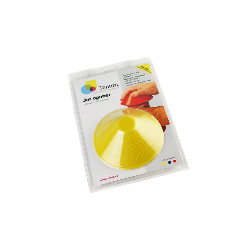 Ouvre bocaux antidérapant. S'adapte aux principaux types de couvercles. Trois coloris disponibles. Diamètre : 11. 5 cm.