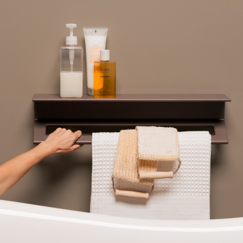 S'utilise comme barre d'appui, porte-serviette et/ou étagère murale ! Design soigné et discret par rapport aux barres d'appui traditionnelles Longueur : 45 cm Aluminium Poids max : 150 kg