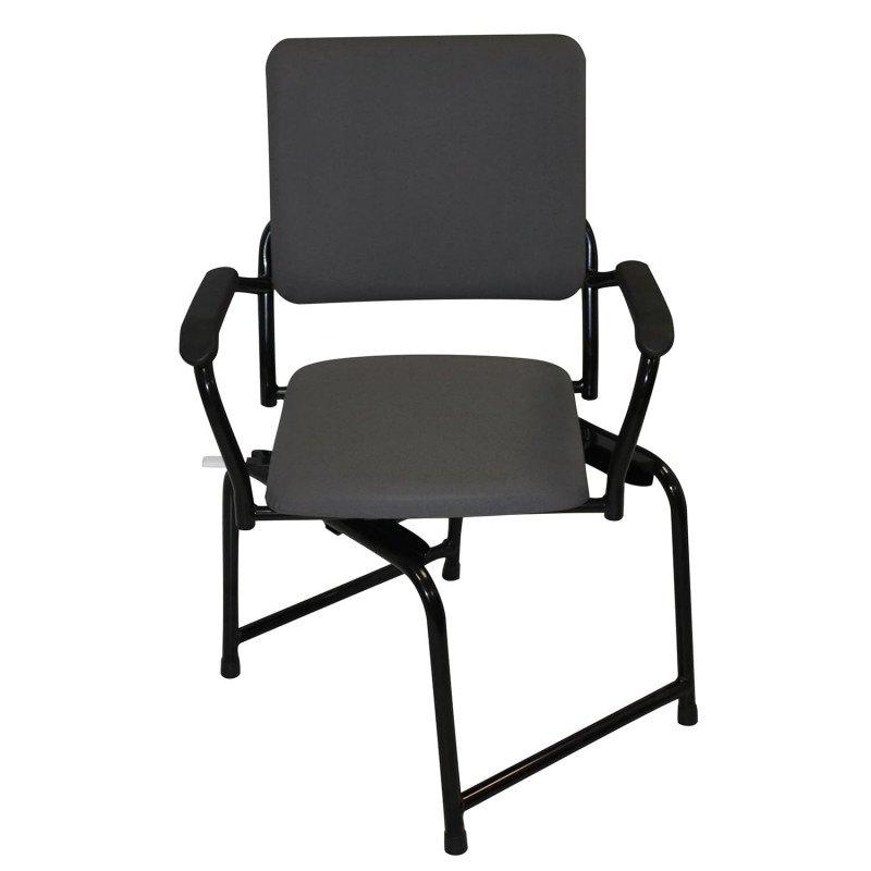 Chaise avec système de rotation à 360° et de glissement. Facilite l'installation lors de l'assise et la levée. Permet à l'utilisateur de rester mobile une fois assis. Modèle avec roulettes disponible pour permettre une meilleure mobilité dans toutes les pièces. Utilisation en intérieur uniquement, ce produit n'est pas fait pour être utilisé dehors ou en sortie de salle de bain. Réglable en hauteur. 2 modèles disponibles, avec ou sans roulettes. Imperméable. Résistance au feu M2.