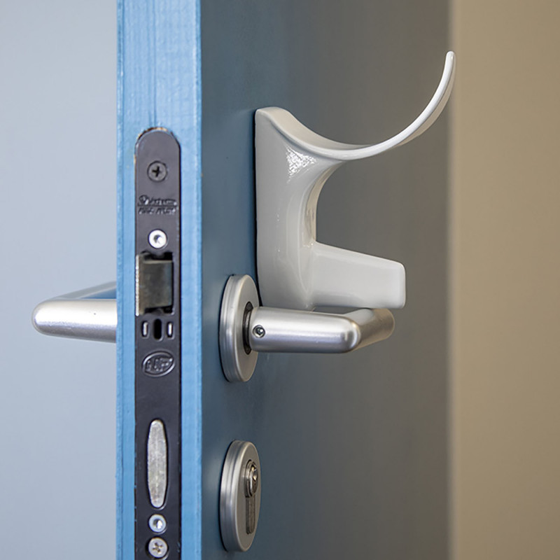 Actionneur de poignée simple à installer sans outilsCompatible avec toutes les poignéesComposition : plastique intelligent antibactérienProduit brevetéFabrication 100% française