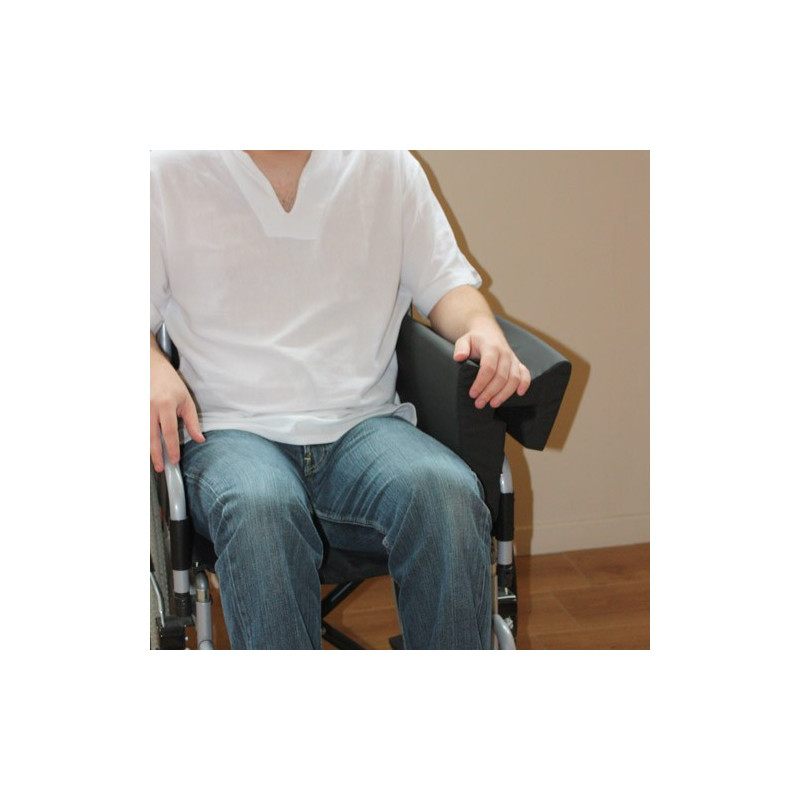 S'adapte facilement sur l'accoudoir du fauteuil. Permet de bien mettre le bras en position de repos dans la gouttière. Particulièrement pratique chez la personne hémiplégique.