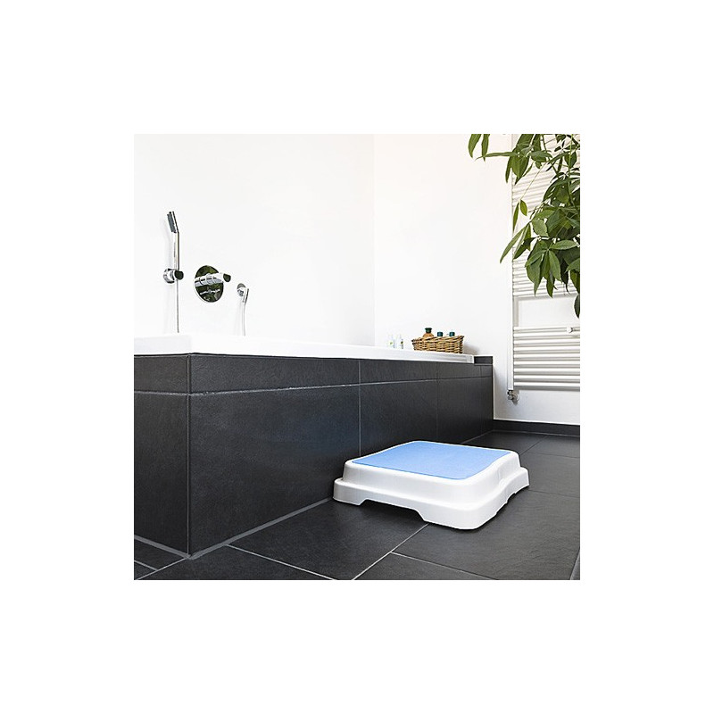 Marche antidérapante pour entrer et sortir de la baignoire en toute sécurité. Large surface. Hauteur : 10 cm. Extensible jusqu'à 30 cm de hauteur (En empilant 5 marches les unes sur les autres et avoir un marche pied d'une hauteur de 30 cm). Le prix indiqué de 29. 90€ correspond à une seule marche.