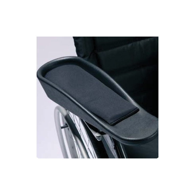 Paire de protections en gel pour accoudoirs gouttières. Dimensions : 11 x 34 cm. Ces coussinets adhésifs permettent à l'utilisateur d'améliorer son confort et de prévenir des escarres ou des douleurs liées aux frottements contre le châssis du fauteuil.