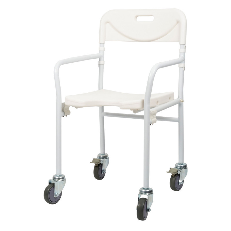 Chaise de douche pliable à roulettes - 50 cm - blanc