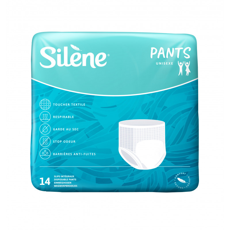 Sous-vêtement très absorbant pour les personnes ayant des problème d'incontinence modérée à sévère. Confortable, soyeux, discret et souple. Protections à enfiler (Pants). Totalement respirable, permettant de réduire considérablement les complications cutanées. Recommandé pour les personnes agitées, désorientées ou Alzheimer. Vendu / sachet de 14 pièces. 3 tailles disponibles : M (2700 ml), L (2900 ml) ou XL (2900 ml). Prix unitaire : 1. 06€ (M), 1. 20€(L) et 1. 35€ (XL)
