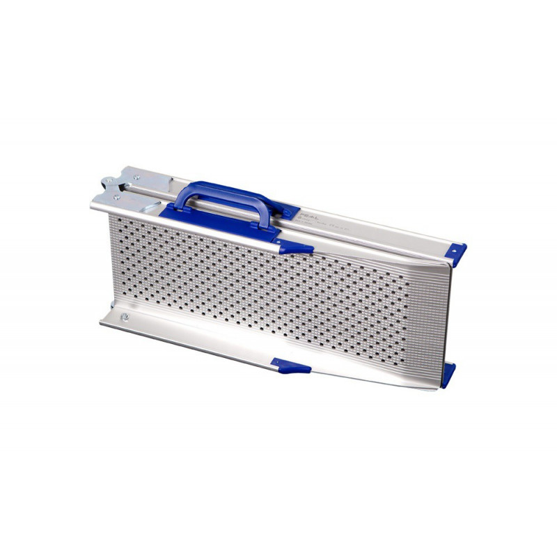 Paire de rampes d'accès pliables en aluminium avec surface antidérapante pour un maximum de sécurité. Disponible en 6 modèles de longueurs différentes (de 110 à 212 cm). Les rampes petits modèles sont plutôt adaptées pour monter un fauteuil, une moto, un scooter dans le coffre d'une voiture et les rampes grands modèles pour le passage d'obstacles. Attention : pour les références TE-2540-4 , TE-2540-5 et TE-2540-6, les rampes ne sont pas dotées de anses et pièces en plastique bleues. (cf visuel numéro 3).
