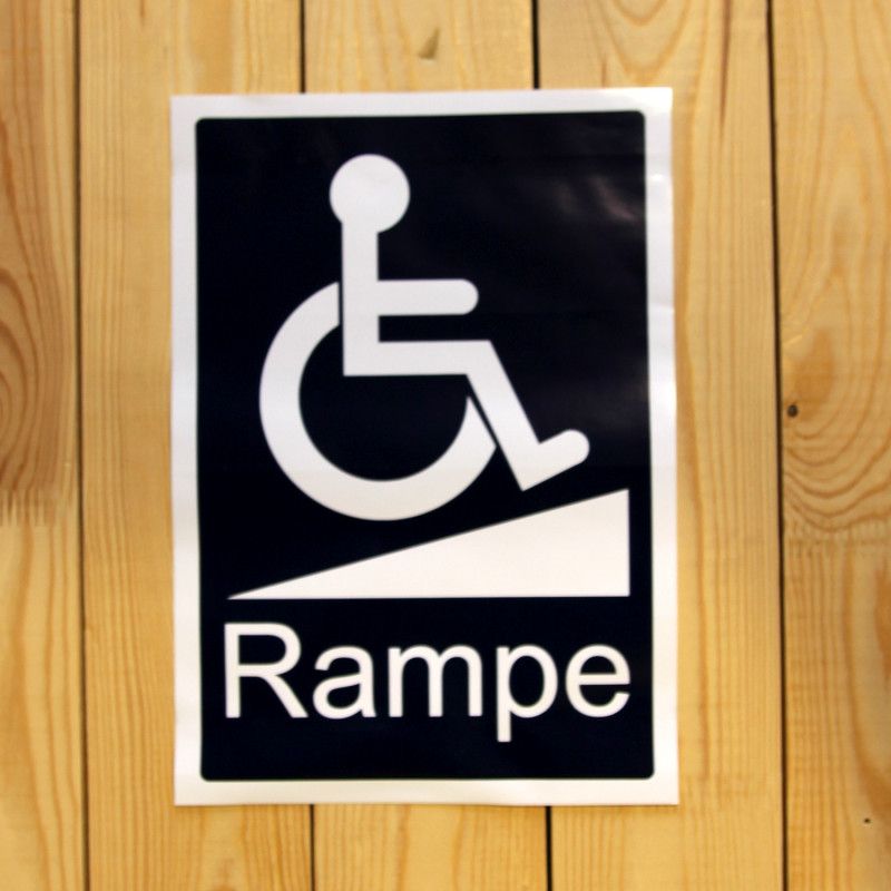 - Sticker souple adhésif. - Disponible en 2 tailles différentes. Attention cet autocollant n'est pas fourni avec le carillon d'alerte pour appeler l'installation de la rampe d'accès.