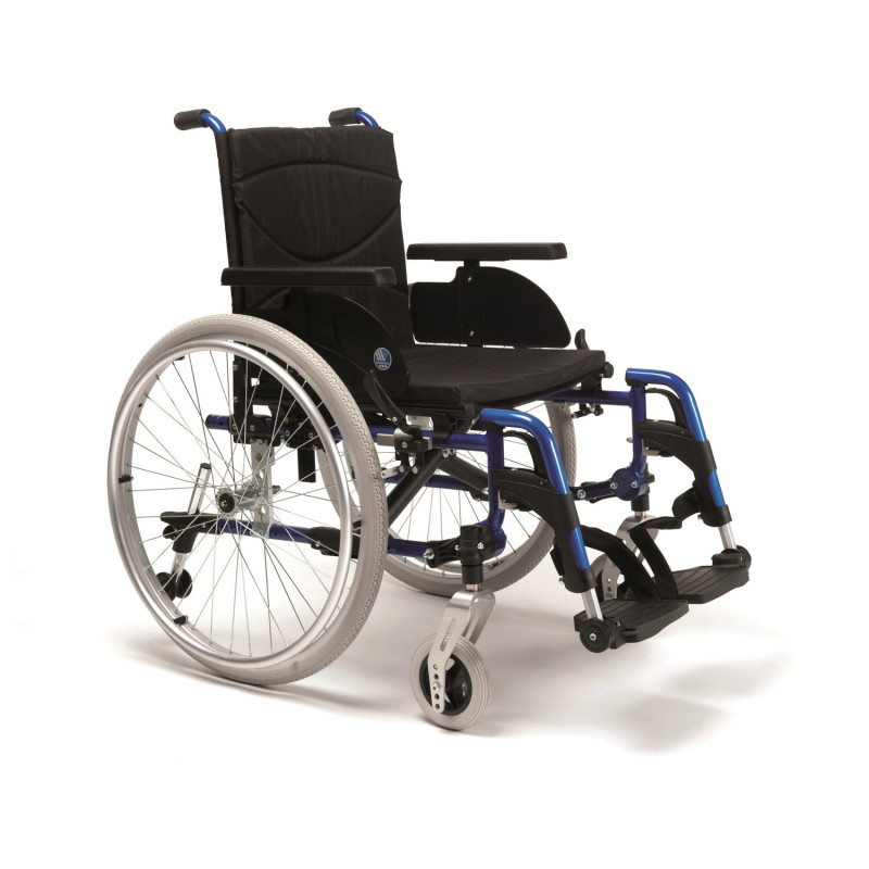 Fauteuil roulant manuel léger v500 bleu largeur 46 cm